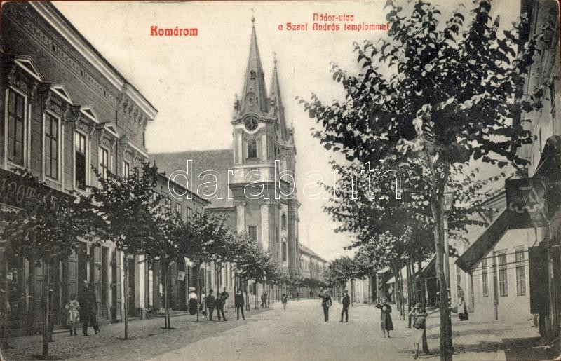 Komárom Nádor street, St. Andrew's Church https://www.darabanth.com/hu/186-Gyorsarveres/186.0/Kepeslapok/Felvidek~8000012/Komarom-Nador-street-St-Andrews-Church~II680796