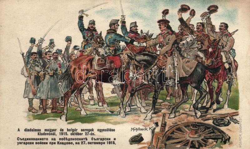 Hungarian and Bulgarian soldiers meeting in Kladovo, 1915, WWI propaga... https://www.darabanth.com/hu/186-Gyorsarveres/186.0/Kepeslapok/Katonai~8000084/Hungarian-and-Bulgarian-soldiers-meeting-in-Kladovo-1915-WWI-propaganda-litho-s-Muhlbeck-K~II683121
