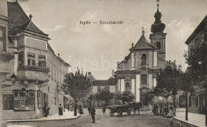 Győr Erzsébet tér, templom, lovasszekér https://www.darabanth.com/hu/186-Gyorsarveres/186.0/Kepeslapok/Magyarorszag~8000010/Gyor-Erzsebet-ter-templom-lovasszeker~II681219