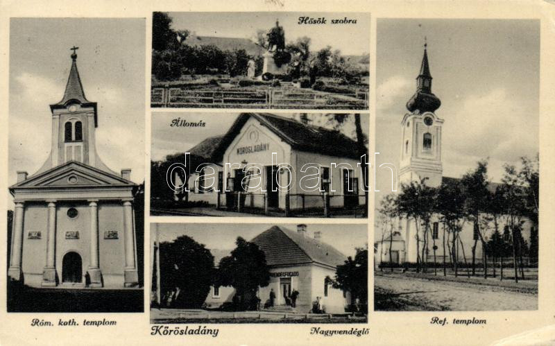 Körösladány, kat. és ref. templom, hősök szobra, állomás, Nagyvendéglő... https://www.darabanth.com/hu/186-Gyorsarveres/186.0/Kepeslapok/Magyarorszag~8000010/Korosladany-kat-es-ref-templom-hosok-szobra-allomas-Nagyvendeglo-EK~II683006