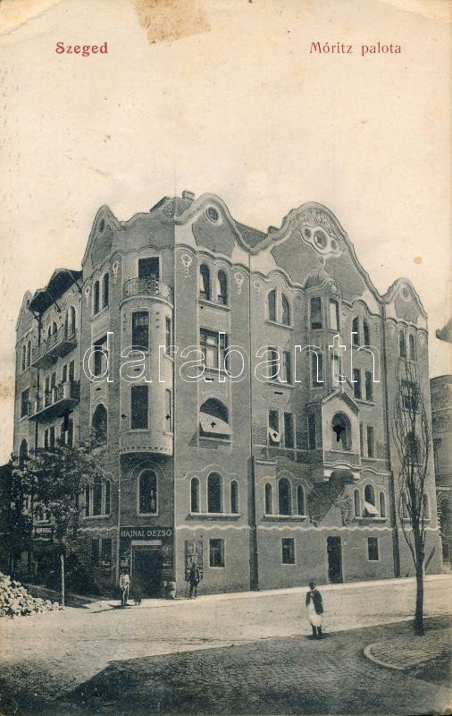 Szeged Móric palota, Hajnal Dezső üzlete (EK) https://www.darabanth.com/hu/186-Gyorsarveres/186.0/Kepeslapok/Magyarorszag~8000010/Szeged-Moric-palota-Hajnal-Dezso-uzlete-EK~II681991
