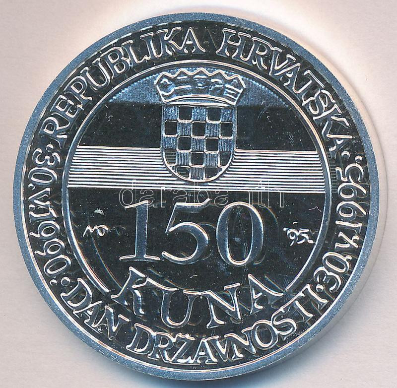 Croatia 199... https://www.darabanth.com/hu/186-Gyorsarveres/186.0/Numizmatika/Kulfoldi-fem-es-ezustpenzek~12/Horvatorszag-1995-150K-Ag-TPP-Tanusitvannyal-disztokban-3Cbr3ECroatia-1995-150-Kuna-Ag-CPP~II684051