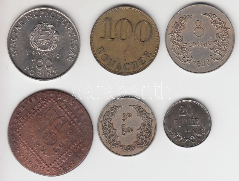 Leírás: Vegyes fém-és ezüstpénz, bankjegy és jelvény tétel: összesen 13db klf darab, közte magyar és külföldiek, régi és modernebb darabok egyaránt T:vegyes