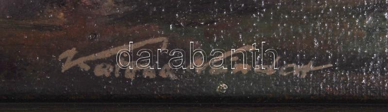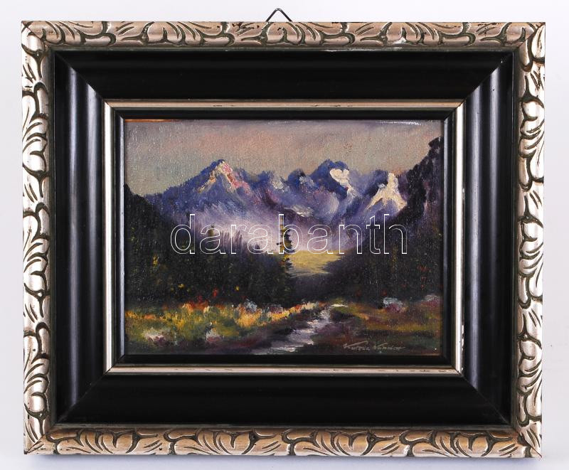 Leírás: Katona Nándor jelzéssel: Alpesi táj. Olaj, farost, keretben 28×34 cm