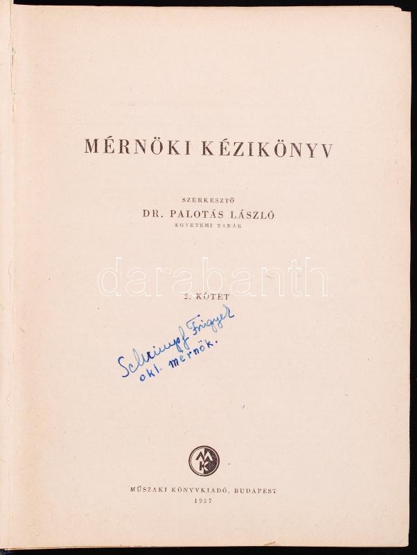Mérnöki Kézikönyv. szerkesztő: Dr. Palotás László. 2. kötet. Műszaki k... https://www.darabanth.com/hu/187-Gyorsarveres/187.0/Festmeny-mutargy-papirregiseg-egyeb/Konyvek-Tudomany-es-technika~6000029/Mernoki-Kezikonyv-szerkeszto-Dr-Palotas-Laszlo-2-kotet-Muszaki-konyvkiado-Budapes~II690566