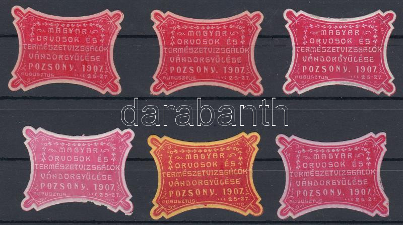 Leírás: 1907 Magyar orvosok és természetvizsgálók vándorgyűlése Pozsony 6 db levélzáró dombornyomással