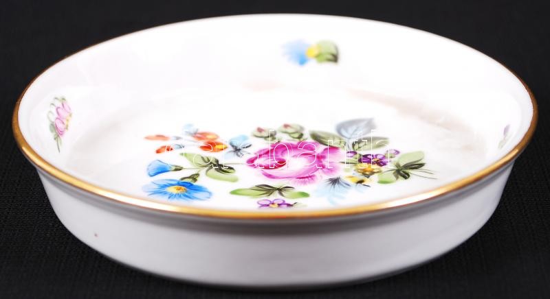 Leírás: Virágokkal díszített, kézzel festett és aranyozott, jelzett Herendi tálka /