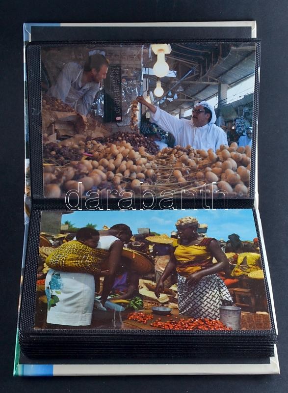 Leírás: National Geographic album, benne 36 modern képeslap piacokról / National Geographic album with 36 modern postcards about markets
