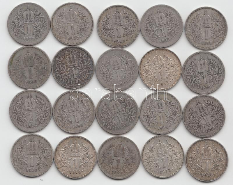 Leírás: Ausztria 1893-1915. 1K Ag "Ferenc József" (20x) T:vegyes