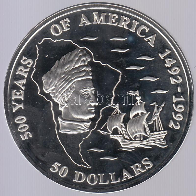 Leírás: Cook-szigetek 1991. 50$ Ag "Amerika 500 éve - Amerigo Vespucci" T:PP
