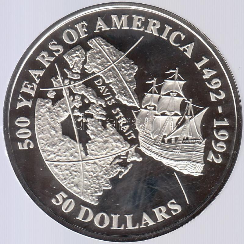 Leírás: Cook-szigetek 1992. 50$ Ag "Amerika 500 éve - Davis szoros" T:PP
