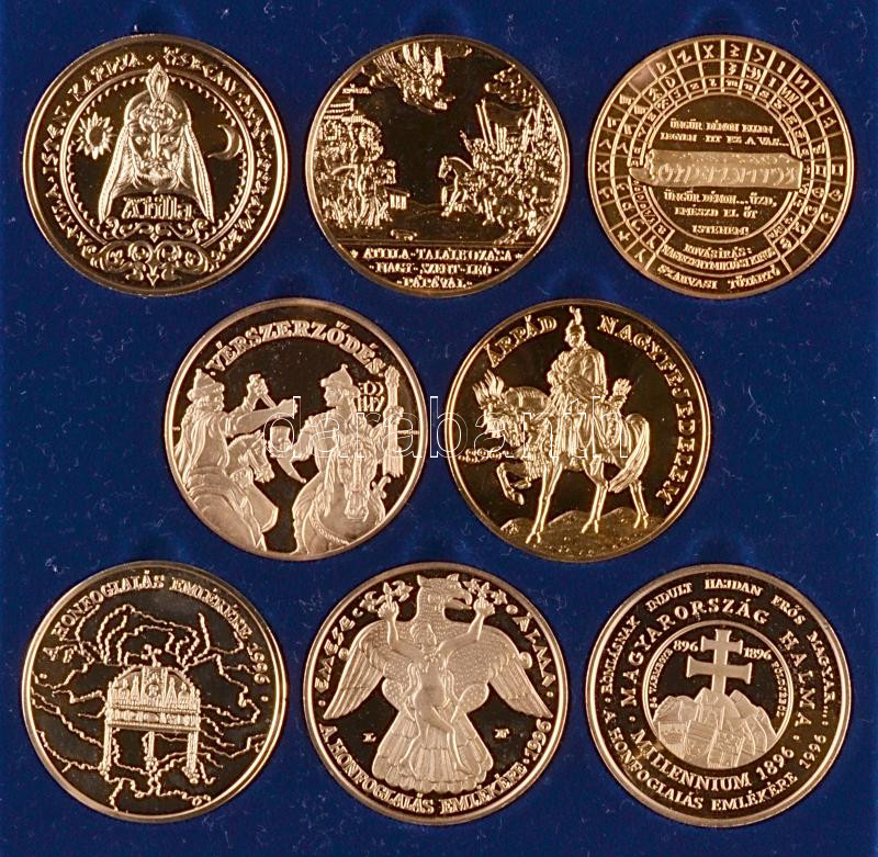 Leírás: Lebó Ferenc (1960-) 1993-1995. "Magyarok Népvándorlása és Honfoglalása emlékérem sorozat" teljes, 6db klf aranyozott éremből álló kollekciója dísztokban, sorszámozott tanúsítványokkal! T:PP Csak 3000db!