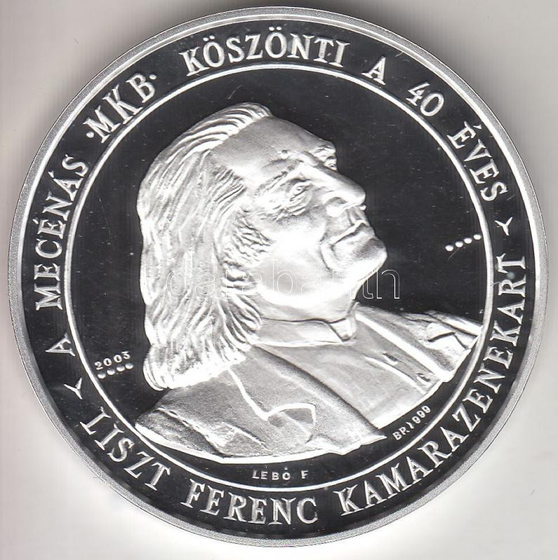 Leírás: Lebó Ferenc (1960-) 2003. MKB "Liszt Ferenc Kamarazenekar" Ag(999) emlékérem (31g/42mm) dísztokban T:PP