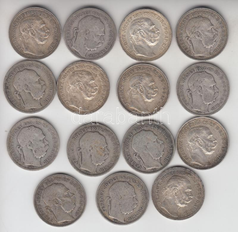 1893-1915. 1K Ag "Ferenc József" (15x) T:vegyes https://www.darabanth.com/hu/187-Gyorsarveres/187.0/Numizmatika/Magyar-fem-es-ezustpenzek~8/1893-1915-1K-Ag-Ferenc-Jozsef-15x-Tvegyes~II693974