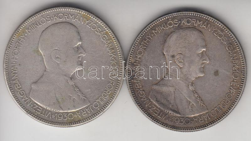1930. 5P Ag "Horthy-jobbra" (2x) T:3 https://www.darabanth.com/hu/187-Gyorsarveres/187.0/Numizmatika/Magyar-fem-es-ezustpenzek~8/1930-5P-Ag-Horthy-jobbra-2x-T3~II694015