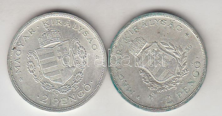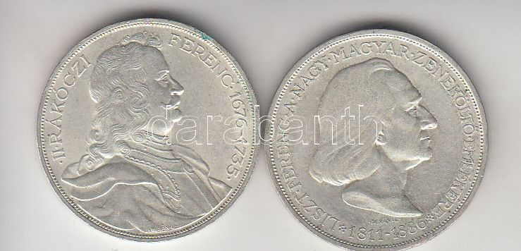 1935. 2P Ag "Rákóczi" T:2 + 1936. 2P Ag "Liszt" T:2 https://www.darabanth.com/hu/187-Gyorsarveres/187.0/Numizmatika/Magyar-fem-es-ezustpenzek~8/1935-2P-Ag-Rakoczi-T2-plus-1936-2P-Ag-Liszt-T2~II692257