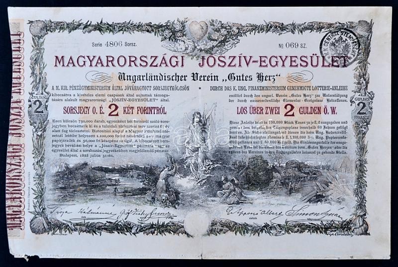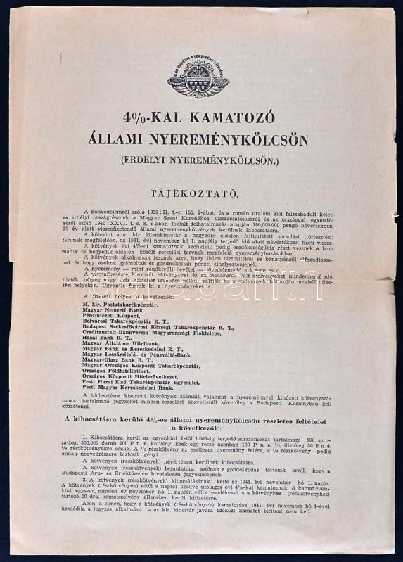 Budapest 1920. "4 1/2%-os Budapest-Fővárosi Adómentes Kölcsönkötelezvényről" kibocsátott részvény 1000K értékben + Budapest 1888. "Magyarországi Jószív-Egyesület" sorsjegye pecsételéssel 2Ft-ról magyar és német nyelven + Budapest 1941. "4%-kal kamatozó állami nyereménykölcsön (erdélyi nyereménykölcsön) tájékoztató T:III