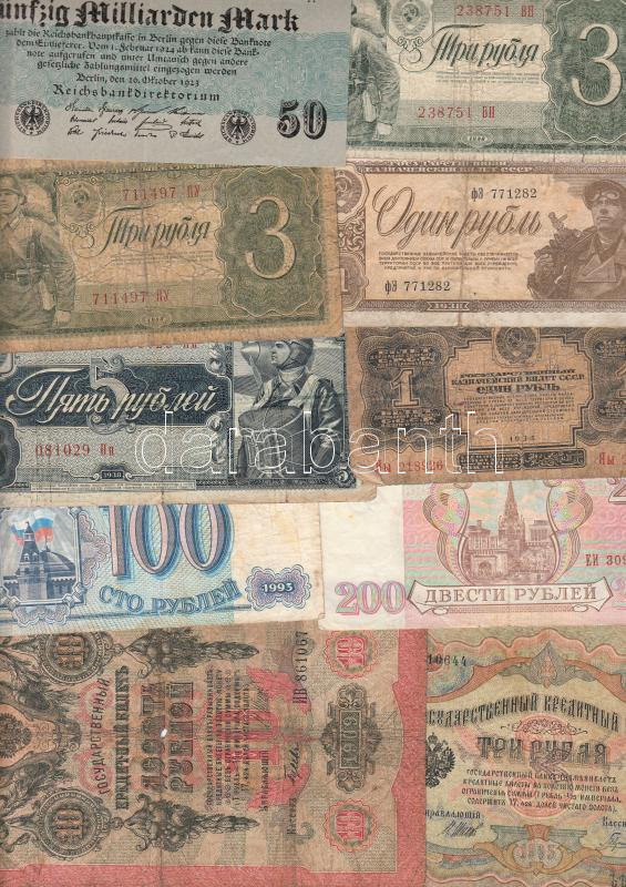 Mixed Hungarian Pengő banknotes and German and Russian/Soviet paper money, alltogether 65pcs C:mixed