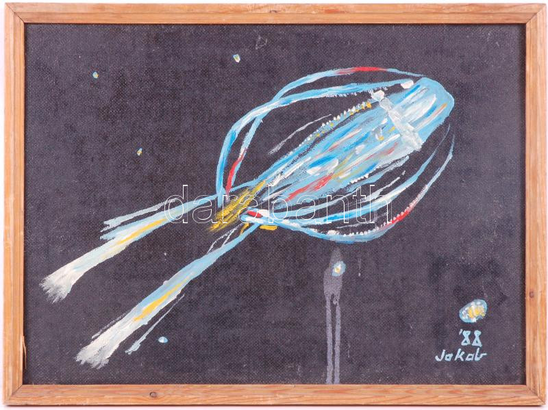 Leírás: Jakab jelzéssel: Rakéta. Olaj, karton, keretben 31×42 cm
