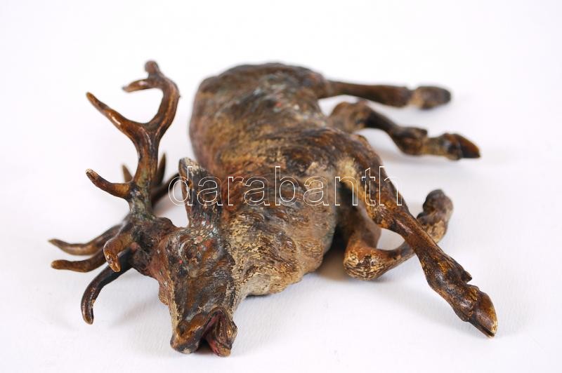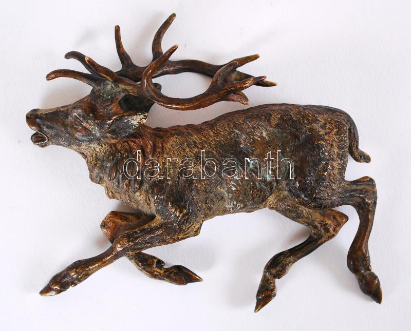 Leírás: Szarvas, bronz asztali nehezék, talapzat hiányzik, 11×16 cm