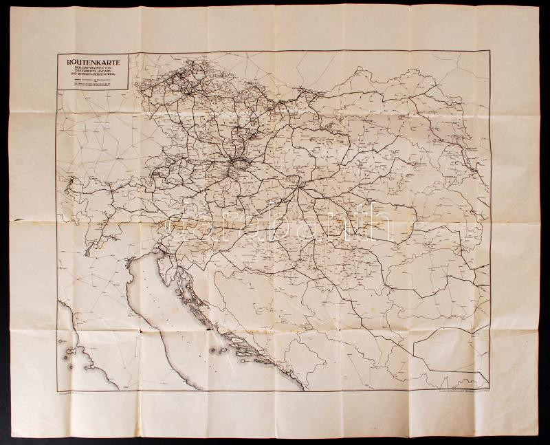 1912 Az Osztrák-Magyar Monarchia és Bosznia vasúti térképe, 60x80cm https://www.darabanth.com/hu/188-Gyorsarveres/188.0/Festmeny-mutargy-papirregiseg-egyeb/Terkepek~15000024/1912-Az-Osztrak-Magyar-Monarchia-es-Bosznia-vasuti-terkepe-60x80cm~II698527