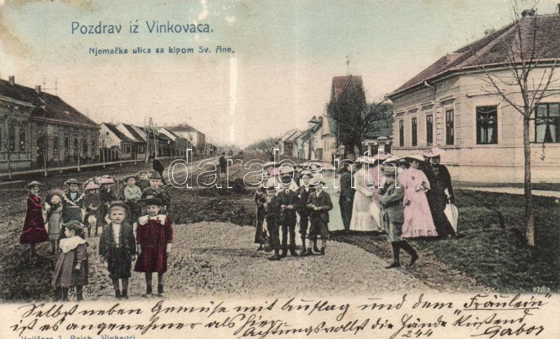 Vinkovce, Vinkovci; Njemacka ulica / street, collage https://www.darabanth.com/hu/188-Gyorsarveres/188.0/Kepeslapok/Horvatorszag-Delvidek~4000009/Vinkovce-Vinkovci-Njemacka-ulica-street-collage~II702903