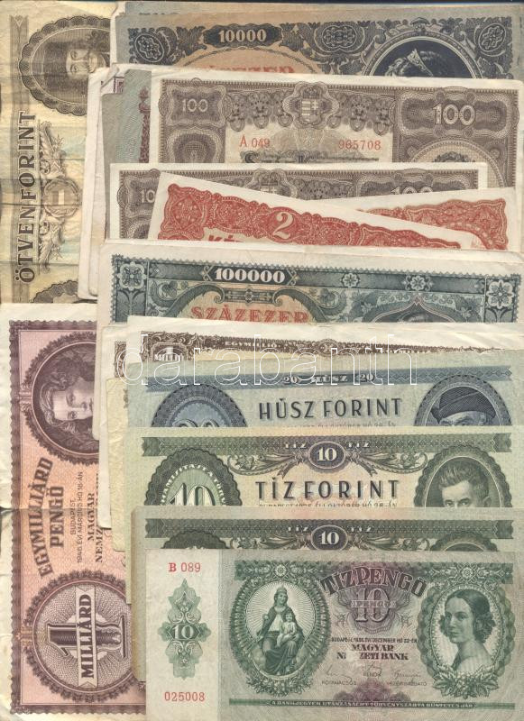 Leírás: 50db vegyes bankjegy, főleg magyar forint és pengő, de külföldi darabok is T:vegyes