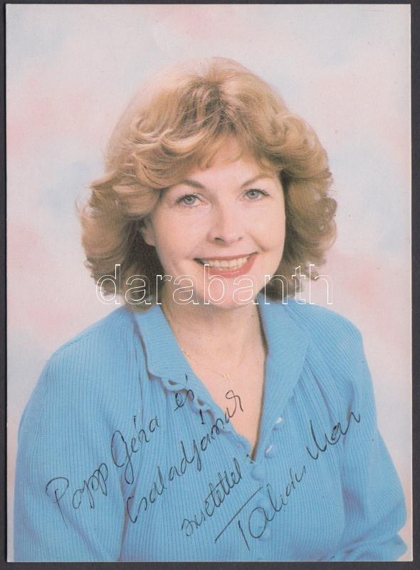 Leírás: 1985 Takács Mari (1938-1997) bemondónő portréja saját kezű aláírásával