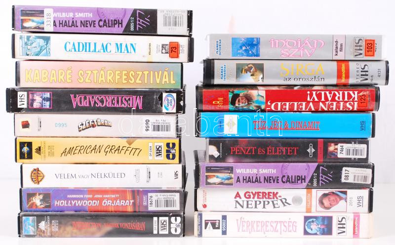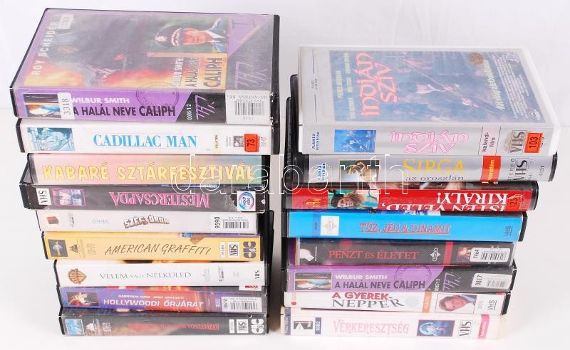 17 db videokazetta: Kaland-, romantikus filmek, vígjátékok, kabaré, stb. (Pénzt és életet, Cadillac man, Velem vagy nélküled, Intersection- Vágyak vonzásában, Hollywoodi őrjárat Stb...)
