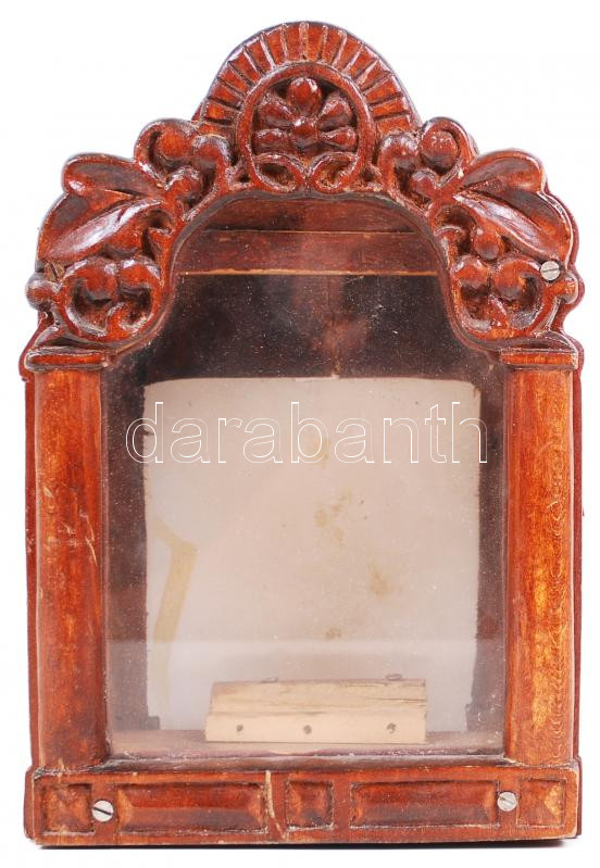 Leírás: Régi faragott óratok, több helyen javított, m:26 cm, 18×12 cm