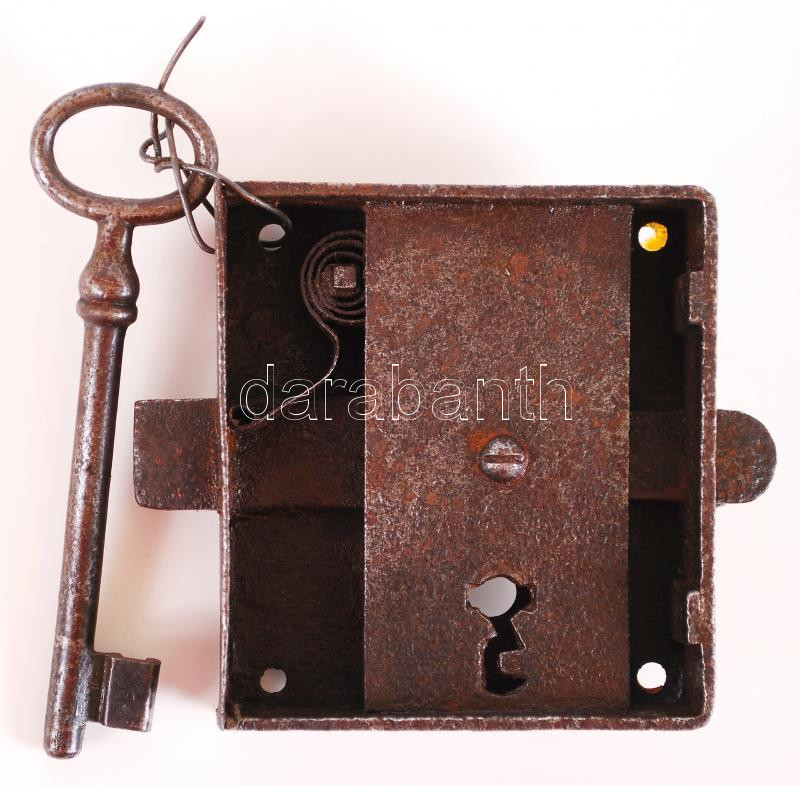 Vintage lock with key https://www.darabanth.com/hu/189-Gyorsarveres/189.0/Festmeny-mutargy-papirregiseg-egyeb/Bolhapiac~4000131/Regi-vas-kamrazar-kulccsal--3Cbr3EVintage-lock-with-key~II708890