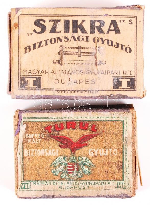 cca 1930 Magyar Általános Gyufaipari R.T., 2db, "Szikra" és "Turul" gy... https://www.darabanth.com/hu/189-Gyorsarveres/189.0/Festmeny-mutargy-papirregiseg-egyeb/Bolhapiac~4000131/cca-1930-Magyar-Altalanos-Gyufaipari-RT-2db-Szikra-es-Turul-gyufasdoboz~II708889