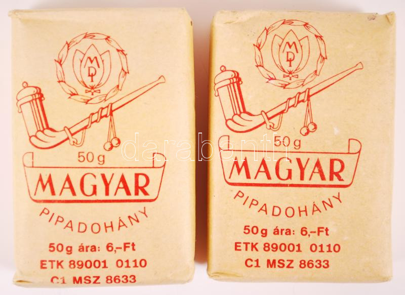 cca 1950 Magyar Dohányipar, 2 pakli pipadohány https://www.darabanth.com/hu/189-Gyorsarveres/189.0/Festmeny-mutargy-papirregiseg-egyeb/Bolhapiac~4000131/cca-1950-Magyar-Dohanyipar-2-pakli-pipadohany~II708783