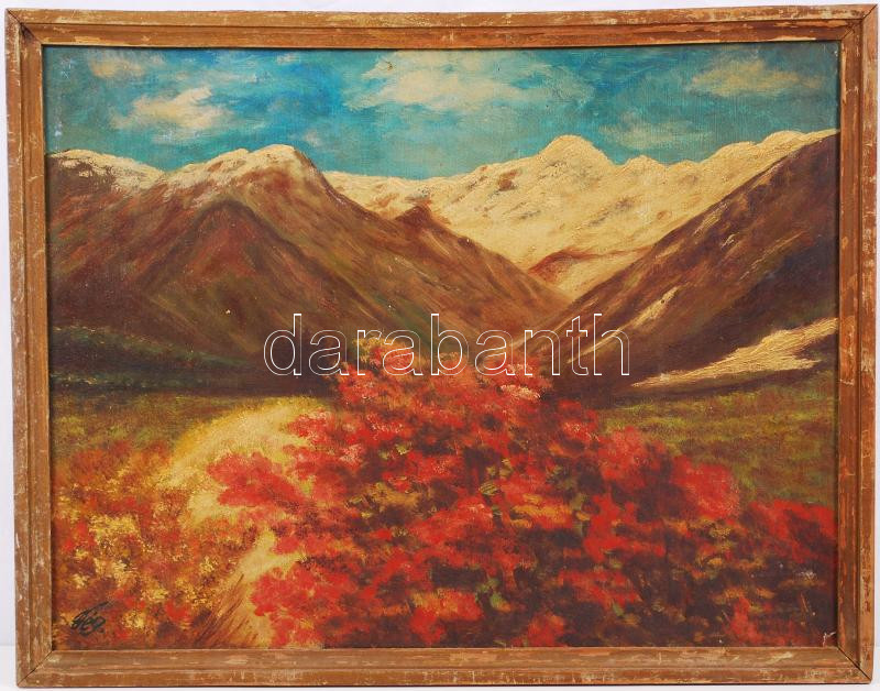 Leírás: Vég jelzéssel: Alpesi táj. Olaj, farost, keretben 39×50 cm
