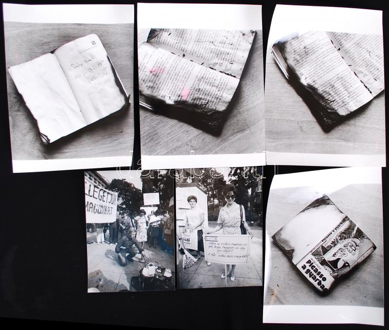 Leírás: 1990 6db fotó Sikló László író, dedikált, majd nyilvánosan elégetett könyvéről, könyveiről. Ism. szerző, 13x18 és 20x18 cm