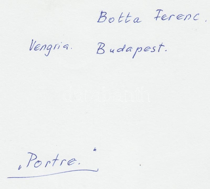 cca 1960 Botta Ferenc (1919-1968): Portré. Vintage fotó, hátoldalán fe... https://www.darabanth.com/hu/189-Gyorsarveres/189.0/Festmeny-mutargy-papirregiseg-egyeb/Foto~4000017/cca-1960-Botta-Ferenc-1919-1968-Portre-Vintage-foto-hatoldalan-feliratozott~II708522