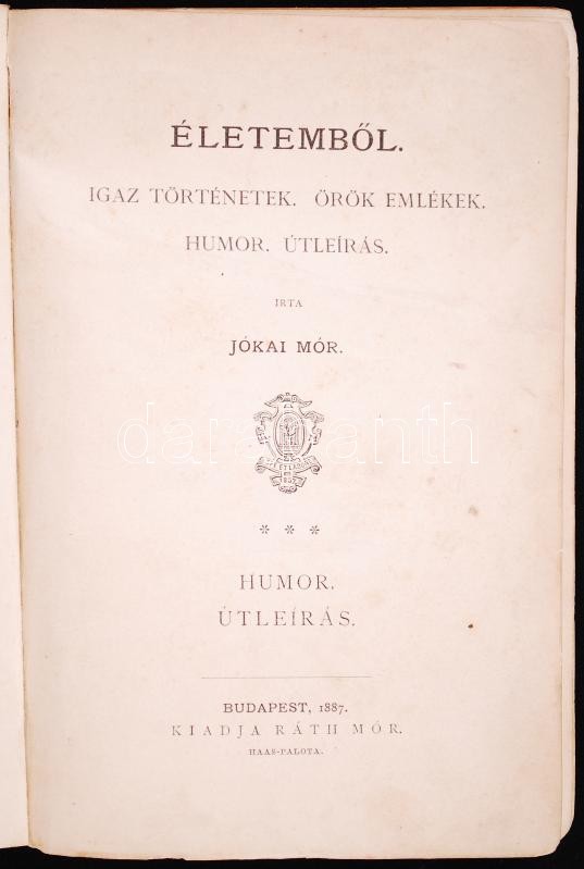 Jókai Mór: Humor. Útleírás. Bp., 1887, Ráth Mór. Kiadói aranyozott egé... https://www.darabanth.com/hu/189-Gyorsarveres/189.0/Festmeny-mutargy-papirregiseg-egyeb/Konyvek-Egyeb-ritkasagok~4000039/Jokai-Mor-Humor-Utleiras-Bp-1887-Rath-Mor-Kiadoi-aranyozott-egeszvaszon-kotesben-~II705650