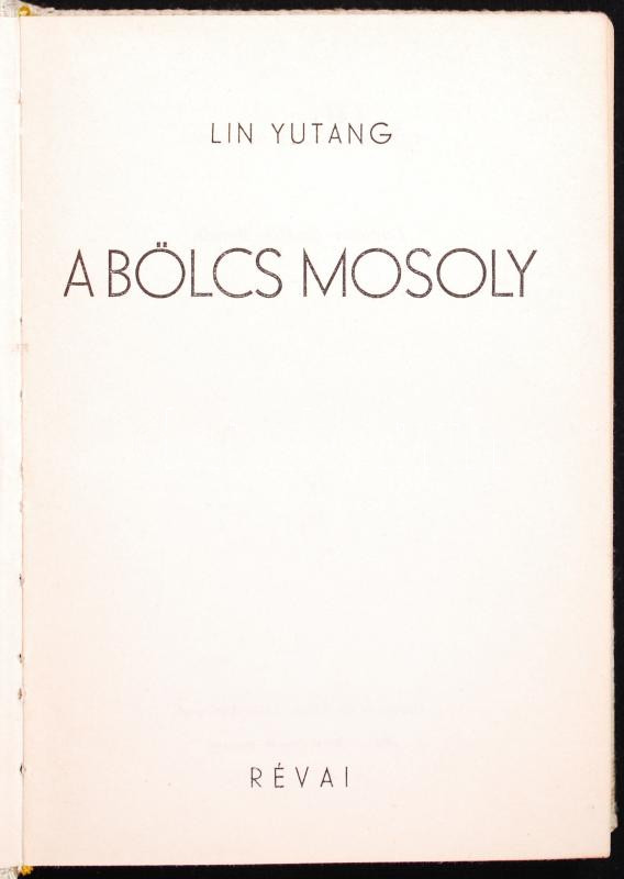 Lin Yutang: Bölcs mosoly. Bp., é.n . Révai. Vászonkötésben https://www.darabanth.com/hu/189-Gyorsarveres/189.0/Festmeny-mutargy-papirregiseg-egyeb/Konyvek-Egyeb-ritkasagok~4000039/Lin-Yutang-Bolcs-mosoly-Bp-en-Revai-Vaszonkotesben~II712005