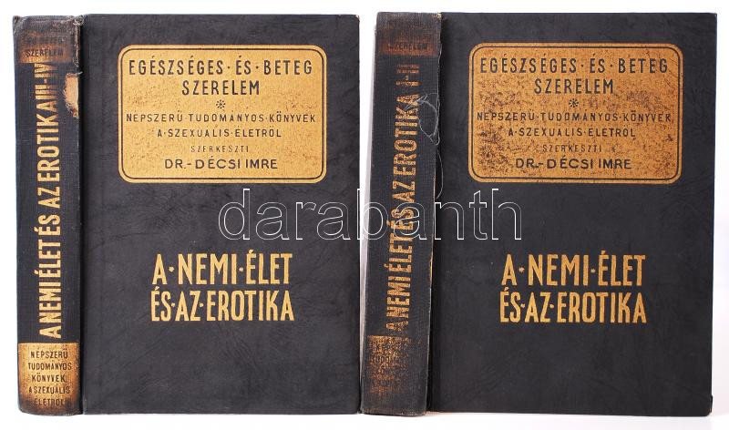 Dr. Décsi Imre: A nemi élet és az erótika I-IV. Írta és átdolgozta - -. Bp., é.n., a "Népszerű tudományos könyvek a szexuális életről" kiadóhivatala. Két kötetbe kötve, kiadói, aranyozott félvászon kötésben (viseltes)