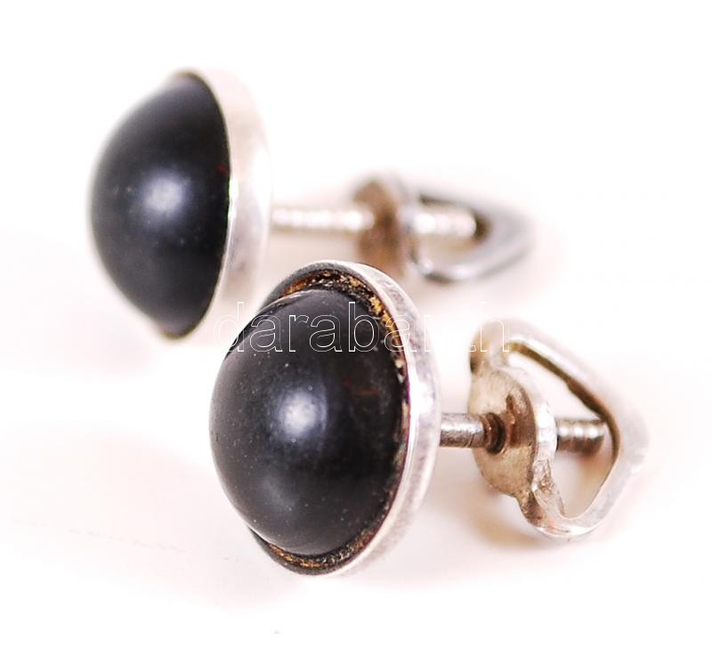 Leírás: Egy pár ezüst (Ag) gyászfülbevaló fekete bakelittel /
