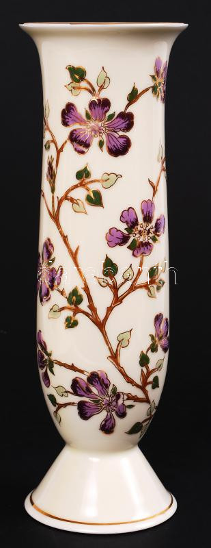 Leírás: Zsolnay virágos mintás váza, kézzel festett, jelzett, hibátlan, m:26 cm