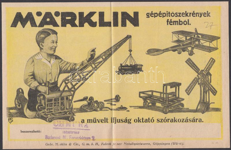 Leírás: cca 1930 Märklin gépépitőszekrények. Kihajtható prospektus