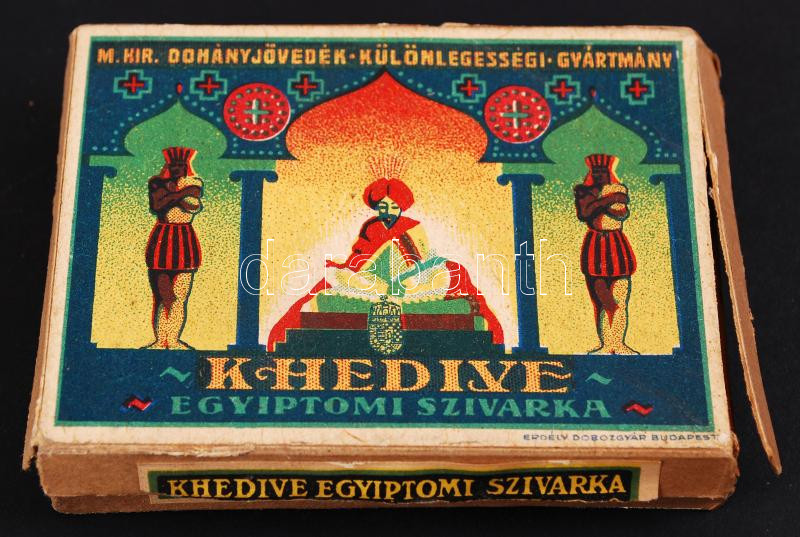 cca 1940 Khedive szivarkás doboz / cigarette box https://www.darabanth.com/hu/189-Gyorsarveres/189.0/Festmeny-mutargy-papirregiseg-egyeb/Reklam~4000018/cca-1940-Khedive-szivarkas-doboz-cigarette-box~II709102