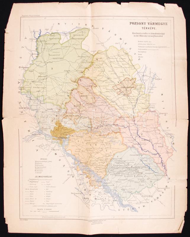 Leírás: cca 1890 Magyar Földrajzi Intézet: Pozsony vármegye térképe 40x30 cm