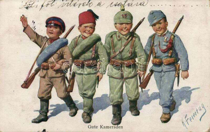 Children soldiers, humour s: K. Feiertag (EK) https://www.darabanth.com/hu/189-Gyorsarveres/189.0/Kepeslapok/Katonai~4000075/Children-soldiers-humour-s-K-Feiertag-EK~II710916