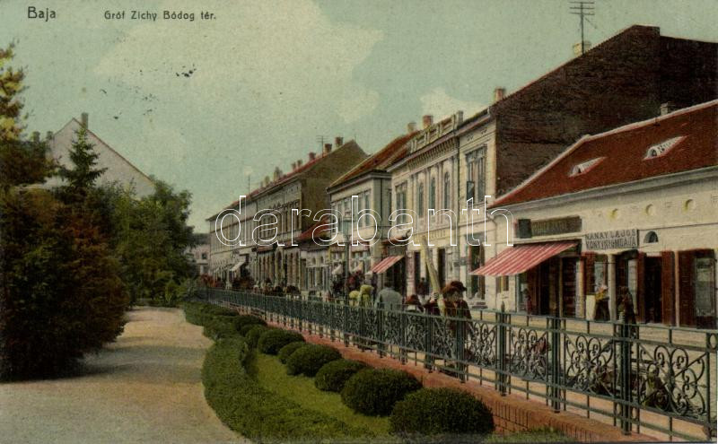 Leírás: Baja Gróf Zichy Bódog tér, Nánay Lajos könyvnyomdája, Wágner Antal üzlete