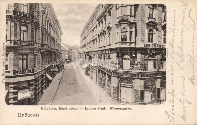 Leírás: Budapest V. Bécsi utca, Hotel Budapest és Bútoráruház az Északi Csillaghoz