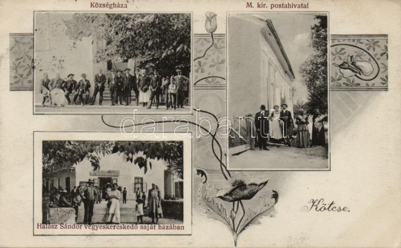 Kötcse Halász Sándor vegyeskereskedése, postahivatal, községháza, Art ... https://www.darabanth.com/hu/189-Gyorsarveres/189.0/Kepeslapok/Magyarorszag~900006/Kotcse-Halasz-Sandor-vegyeskereskedese-postahivatal-kozseghaza-Art-Nouveau~II705302