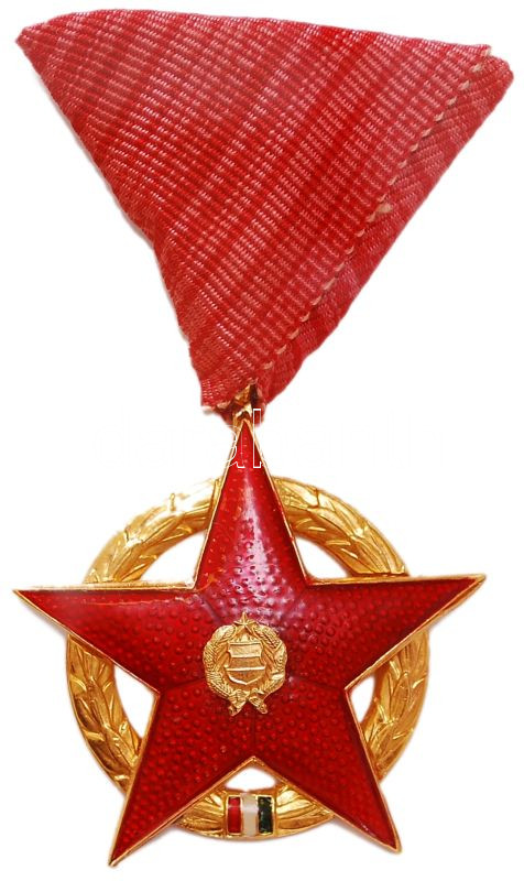 Hungary 1957. "Order of The Red Star" with 1957 coat of arms on ribbon, gilt enamelled Br decoration, only 1574 pieces of this version C:AU