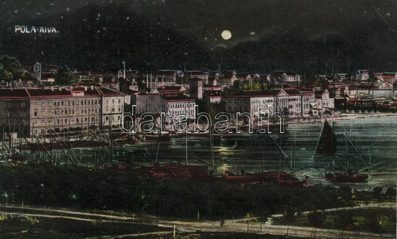 Pola, Riva / port at night (EB) https://www.darabanth.com/hu/19-Nagyaukcio/19.1/Magyar-kepeslapok/Horvatorszag-Delvidek~6547/Pola-Riva-port-at-night-EB~II930389